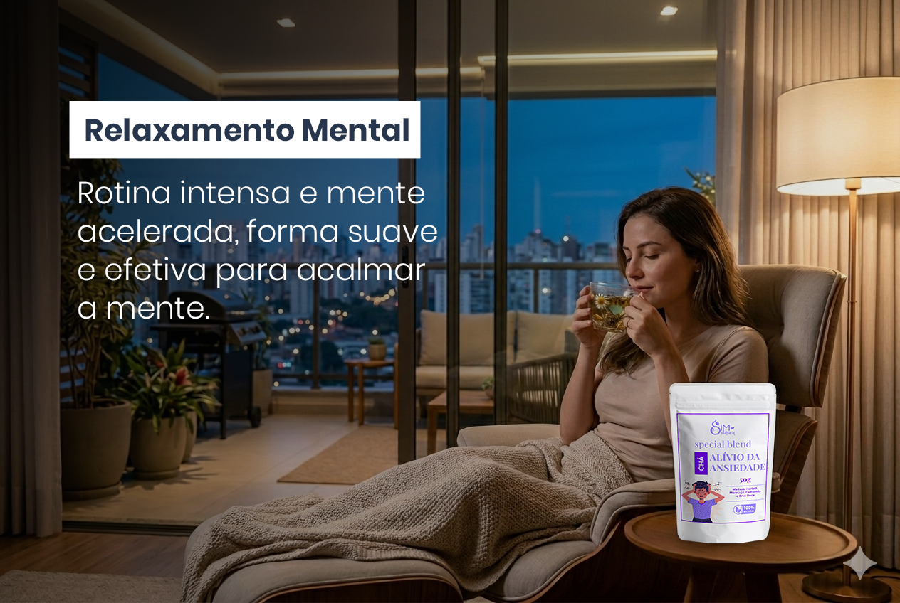 Em dias de rotina intensa e mente acelerada, é comum sentir aquele aperto no peito ou inquietação sem motivo claro. O Chá Alívio da Ansiedade foi cuidadosamente formulado para trazer tranquilidade ao seu dia a dia, ajudando a aliviar sensações de tensão e promovendo um momento de bem-estar e serenidade.