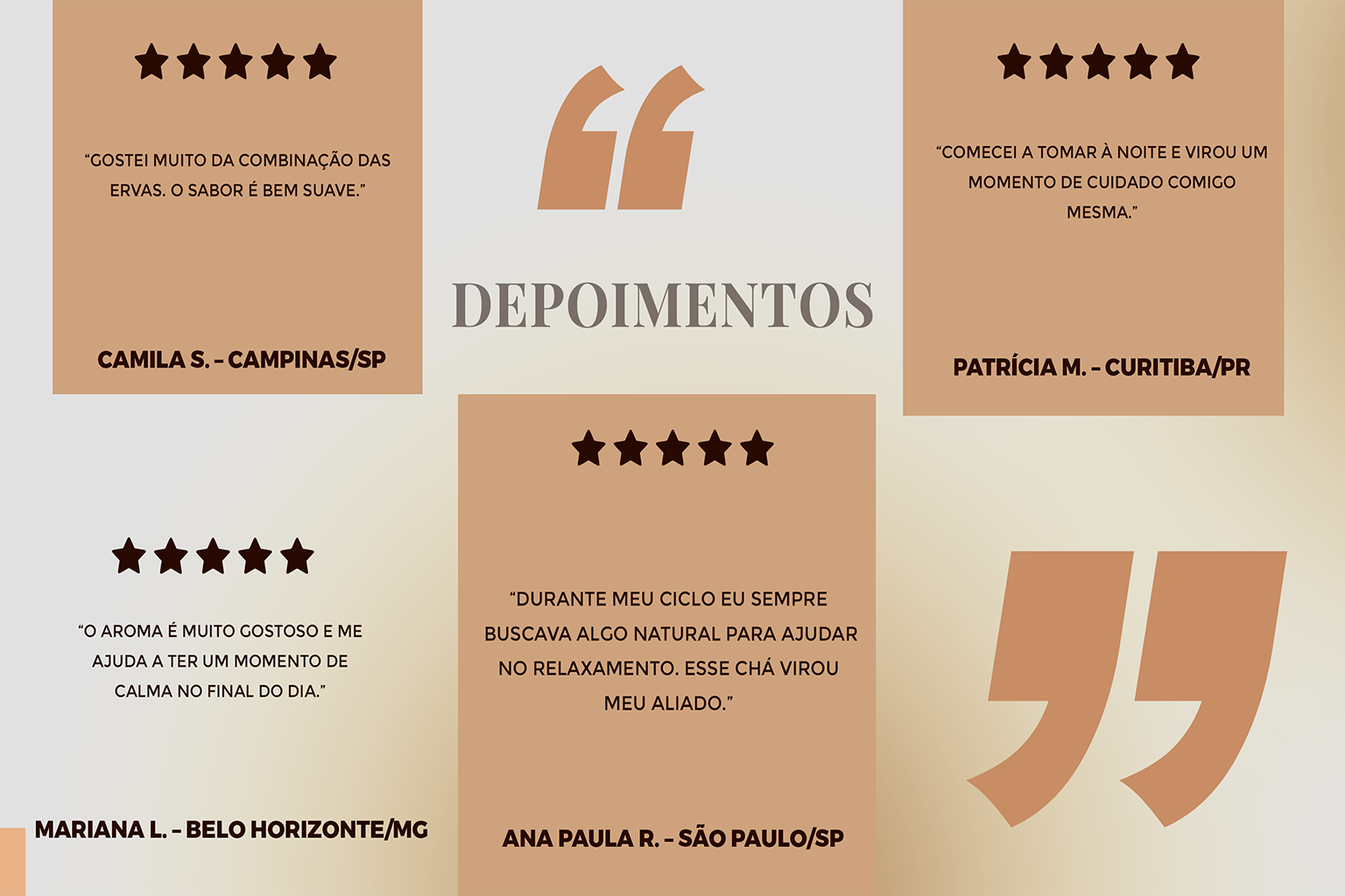 As ervas presentes no blend são tradicionalmente utilizadas para promover relaxamento e bem-estar, podendo ajudar a reduzir o desconforto durante o período menstrual.