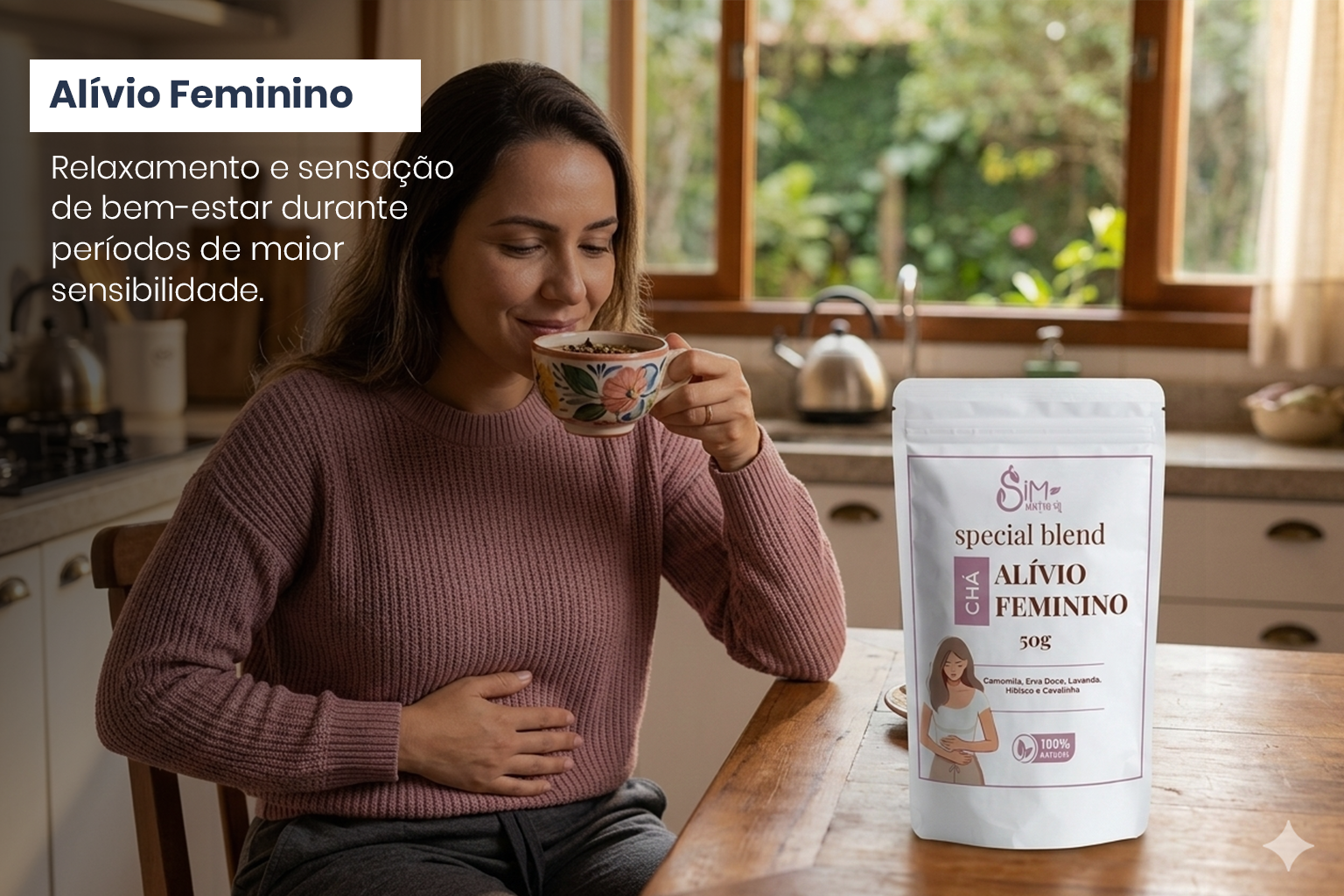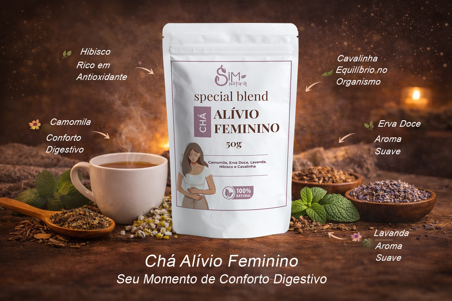 O Chá Alívio Feminino da Sim Natural foi cuidadosamente desenvolvido para proporcionar conforto e bem-estar durante os dias mais sensíveis do ciclo feminino.