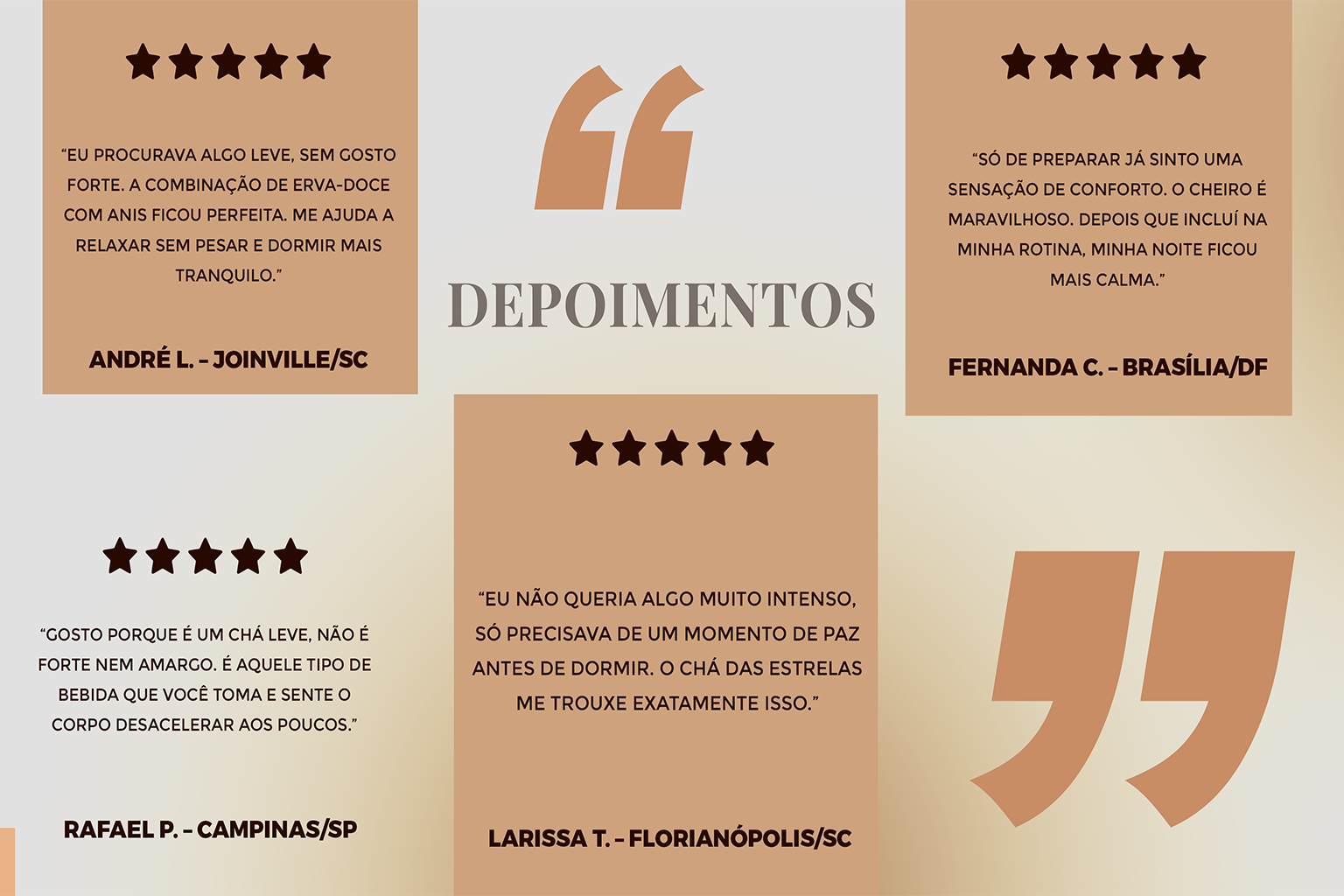 Nosso chá é feito com ingredientes naturais cuidadosamente selecionados, produzido artesanalmente e com ervas que possuem laudo técnico de qualidade. Além disso, não contém glúten nem lactose.