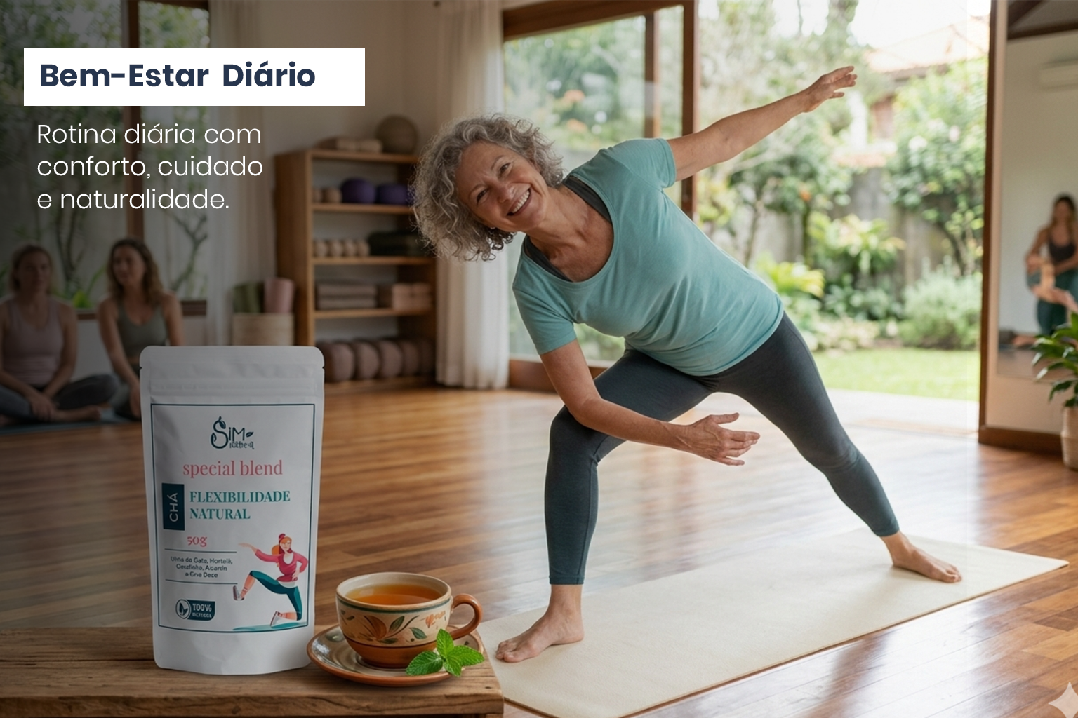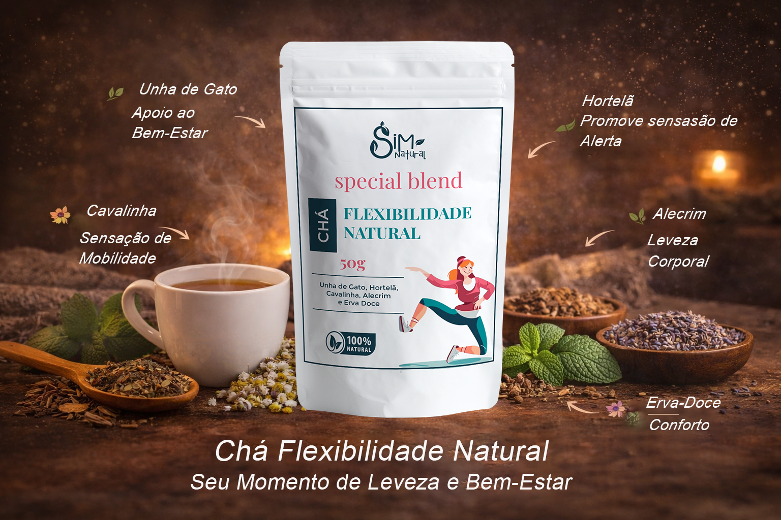 Mais do que um simples chá relaxante, o Flexibilidade Natural traz uma combinação de plantas que se complementam para apoiar sua sensação de movimento com mais conforto — sempre de forma natural e equilibrada.