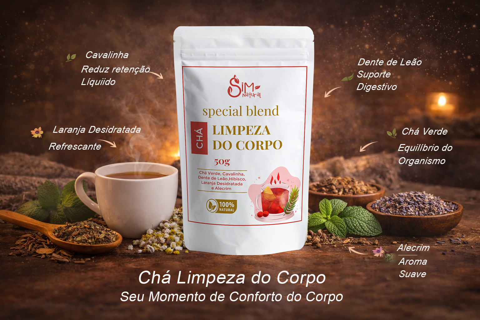 O Chá Limpeza do Corpo foi desenvolvido com uma combinação de ervas tradicionalmente utilizadas em infusões voltadas ao equilíbrio do organismo e ao auxílio na eliminação natural de líquidos.